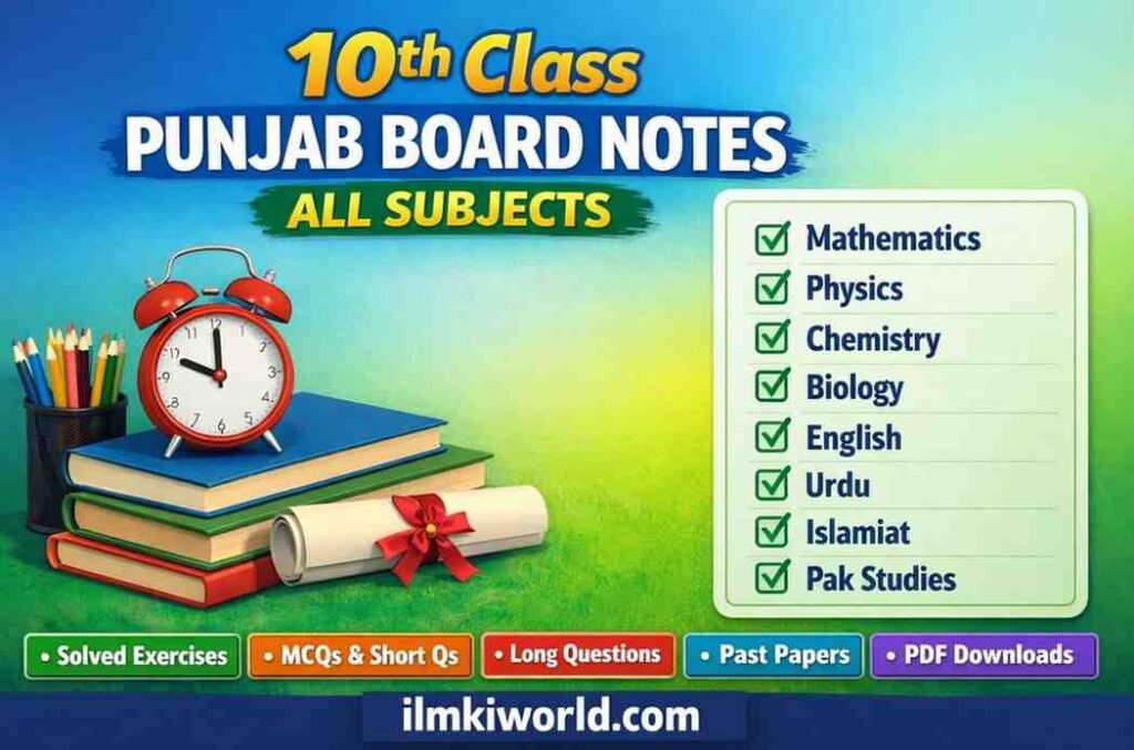 Class 10 notes for the Punjab Board (2026) — including all major subjects and where to find the latest PDF notes that fit the latest syllabus and Punjab Board pattern: