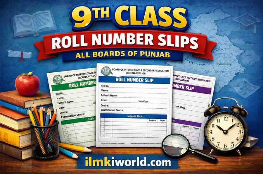 Roll number slips for 9th class (SSC-Part 1) under all Punjab Boards are expected to be issued about 1-2 weeks prior to the commencement of the annual exams, which are expected to be in March 2026.
